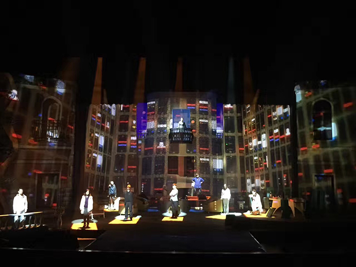 該劇有對人物靈魂的拷問、對人性的追問,也有對生命意義的表達(dá),在雄渾凝重的燈光設(shè)計(jì)風(fēng)格上,著重呈現(xiàn)劇目的人物塑造。該劇中,LED切割燈GL-6和LED圖案燈GL-5,承擔(dān)了劇目面光和舞臺特效的作用,憑借高亮度、均勻的光斑、全面的功能和穩(wěn)定的運(yùn)轉(zhuǎn),成功為該劇護(hù)航。尤其是LED燈具在調(diào)光、頻閃上更加細(xì)膩線性的表現(xiàn),有助于劇情傳達(dá)更加微妙細(xì)致的情感。另外,天幕燈C5的八色混色,讓色域?qū)拸V、換色細(xì)膩,投光式渲染法使得效果均勻自然、一致性高,渲染劇場氣氛。