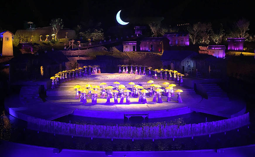 《阿惹妞》是目前中國第一臺(tái)火秀實(shí)景劇,該劇全長60分鐘,共分為5個(gè)篇章,從民族源起的腳步展開,講述了阿惹妞情與愛的生命畫卷。該劇以“火”作為彝族的生命圖騰貫穿始終,呈現(xiàn)了“火”作為一個(gè)民族情感的載體而展開的生命傳奇,具有濃厚的彝族文化風(fēng)情。