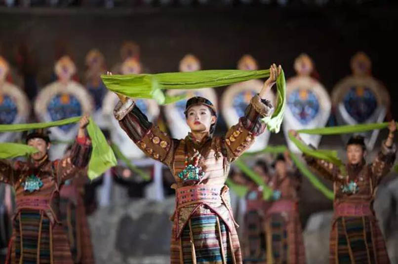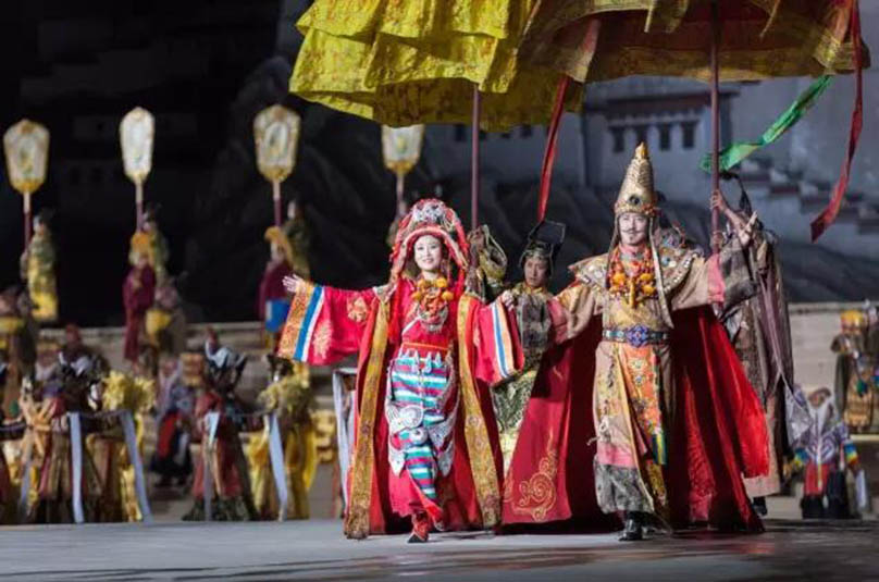 大型藏族實景劇《文成公主》主要講述文成公主入藏歷經(jīng)艱難的征途和曲折起伏的心路歷程,演繹大唐盛世的愛情傳奇,傳唱漢藏和美的動人史歌。該作品分為“大唐之韻”、“天地梵音”、“藏舞大美”、“藏舞大美”及“藏舞大美”五幕,深度融入漢藏歷史文化、民族風(fēng)俗、自然景觀等,引入了大唐歌舞和流傳久遠的藏舞、藏戲、佛號念唱等,通過人工舞臺與自然山水的結(jié)合,用高科技的手段呈現(xiàn)非物質(zhì)文化遺產(chǎn),把戲劇、音樂、舞蹈和現(xiàn)代舞美手段融為一爐,構(gòu)成華美樂章。