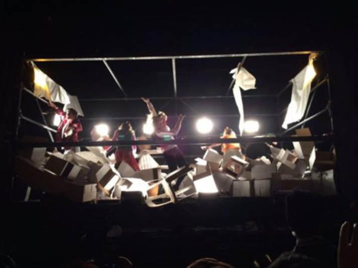 另外,表演者與觀眾零距離互動也同樣是《極限震撼》的一大特色。在節(jié)奏感極強的音樂背景下,演員甚至?xí)挛枧_,深入人群,調(diào)動觀賞者積極性,用泡沫板拍打觀眾頭頂,與觀賞者共舞,使其成為“秀”的一部分。
