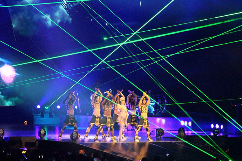 演唱會(huì)當(dāng)晚使用了大量浩洋電子鉑金16R染色燈PT330W,它外形輕巧,光斑角度小,能夠渲染出柔和細(xì)膩?zhàn)繝柌蝗旱奈枧_(tái)效果,為水果姐KatyPerry打造出炫目舞臺(tái)效果!她全場激情獻(xiàn)唱近20首大熱單曲,歌迷從頭合唱到尾,十分熱情。