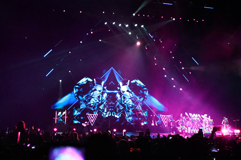當(dāng)晚,在特別嘉賓DJ雙人組The Dolls長達(dá)近半小時(shí)的熱場后,Katy Perry身著一襲紫色熒光虎面緊身超短于晚上21時(shí)閃亮登場。水果姐在近90分鐘的時(shí)間里,以百變造型和勁歌熱舞,high翻全場,浩洋電子燈具交相輝映,完美融入音樂旋律中,讓臺(tái)下粉絲徹底沸騰!