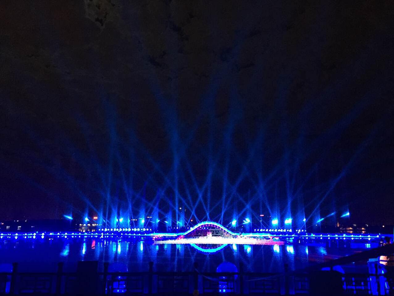 閱海灣中央商務(wù)區(qū)也利用湖內(nèi)的廊橋建造大型水上演藝中心和“夜游銀川”的燈光秀融為一體。游客可坐著船或在棧橋上,欣賞美輪美奐的演藝盛宴。