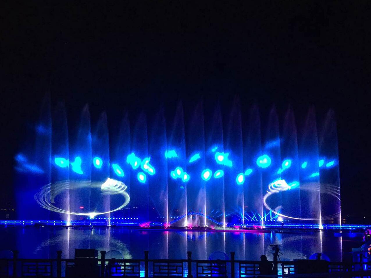 演出位于銀川閱海灣的一個(gè)核心區(qū),其擁有約3000㎡的漂浮平臺(tái)作為主表演區(qū)域,包含了機(jī)械、主體噴泉、投影激光,還有燈光音響等一系列設(shè)備,前方還設(shè)有890㎡的水下舞臺(tái)作為演員的主舞臺(tái)。