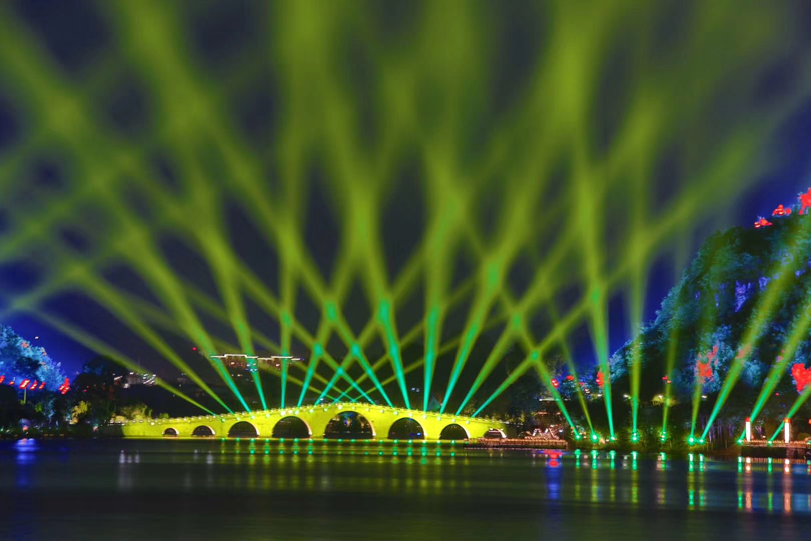 近日,貴州安順虹山湖夜景照明提升工程順利完成驗(yàn)收工作,不僅作為安順市西秀區(qū)文化旅游人居環(huán)境提升工程一期項(xiàng)目的重點(diǎn)工程,同時(shí)引入了項(xiàng)目的重頭戲——大型山水湖景燈光秀《明鑲西秀 意寫江南》。此次虹山湖燈光提升工程由利亞德四川普瑞照明擔(dān)任總施工、總承包及總設(shè)計(jì)方,希核創(chuàng)意(北京)文化發(fā)展有限公司藝術(shù)總監(jiān)、舞臺(tái)視覺藝術(shù)家王遙擔(dān)綱燈光總設(shè)計(jì)。