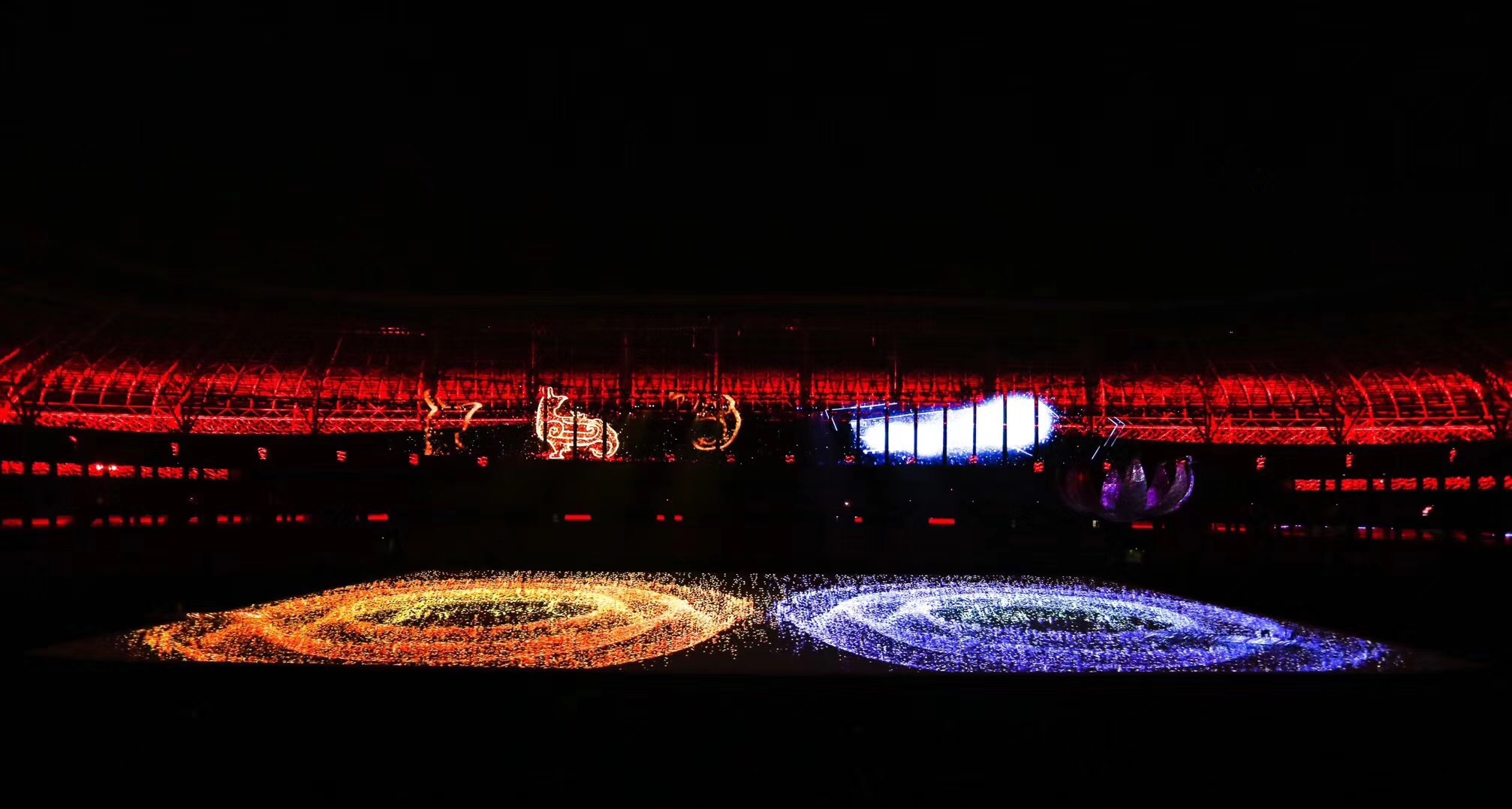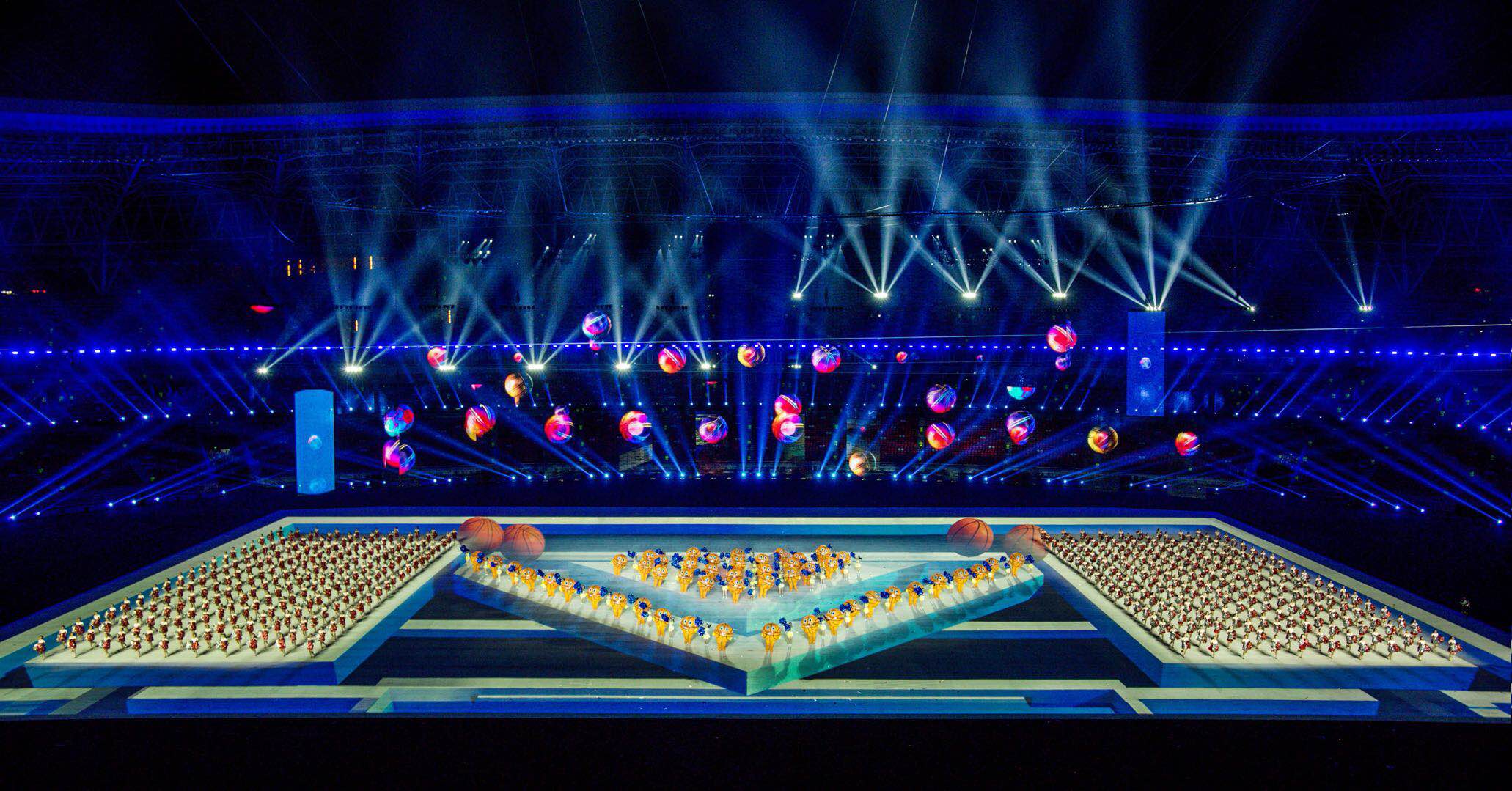 運(yùn)動(dòng)會(huì)開閉幕式整體設(shè)計(jì)的核心理念為“奮斗幸福觀”,開幕式的主題為“奮斗新時(shí)代“,閉幕式將以“幸福新征程”為主題與之呼應(yīng)。開幕式演出運(yùn)用了大型燈光設(shè)備、舞臺(tái)機(jī)械裝置、高清投影設(shè)備、懸掛表演裝置、先進(jìn)音響設(shè)備、空中飛行設(shè)備等多種技術(shù)手段,形成地面、舞臺(tái)、空中三維藝術(shù)呈現(xiàn)形式,將中國(guó)傳統(tǒng)文化與國(guó)際先進(jìn)科技進(jìn)行完美結(jié)合,形成一臺(tái)國(guó)際化高水準(zhǔn)的全景化演出。