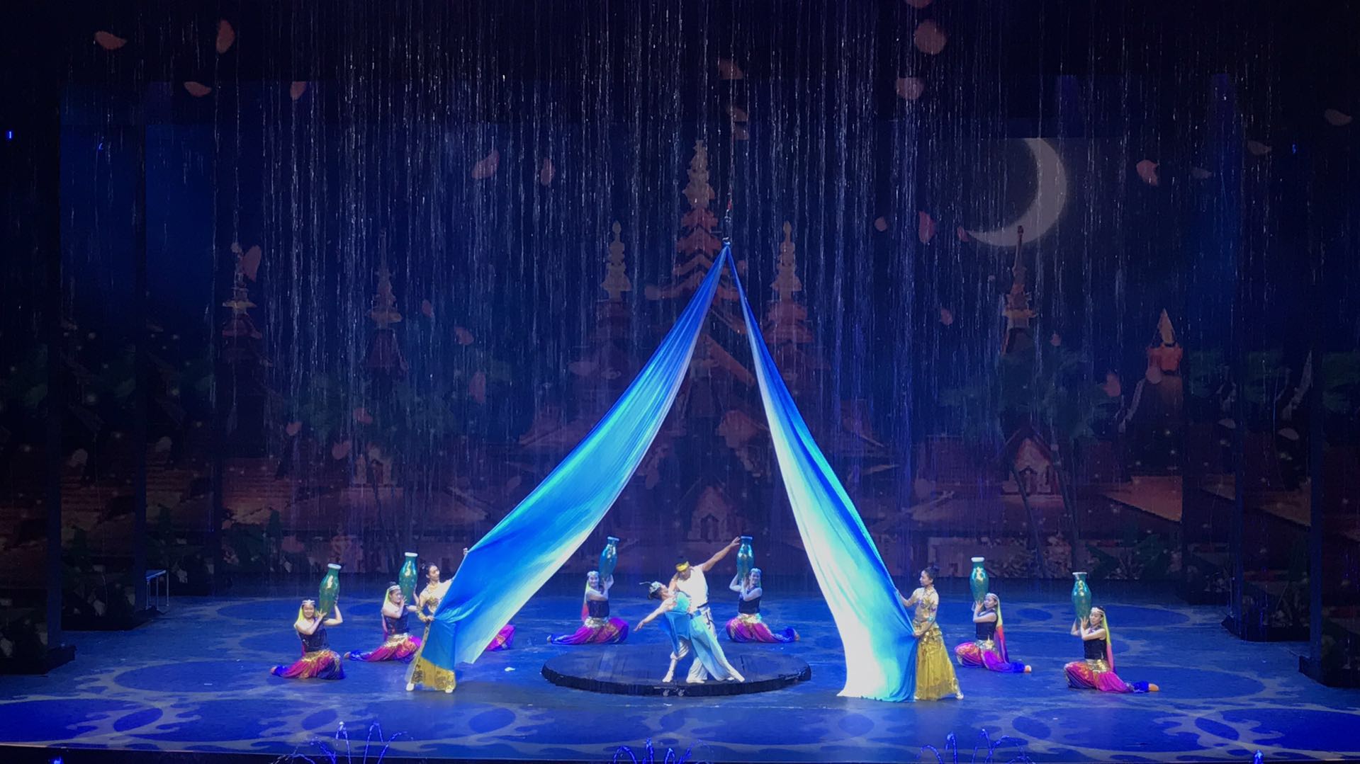 從歷史的長河中切回現(xiàn)場,耳目一新的立體效果、輕松活潑的音樂節(jié)奏、現(xiàn)代一流的燈光舞美、嫻熟自然的雜技表演,將觀眾帶入了吳橋雜技藝術(shù)的歷史故事中。