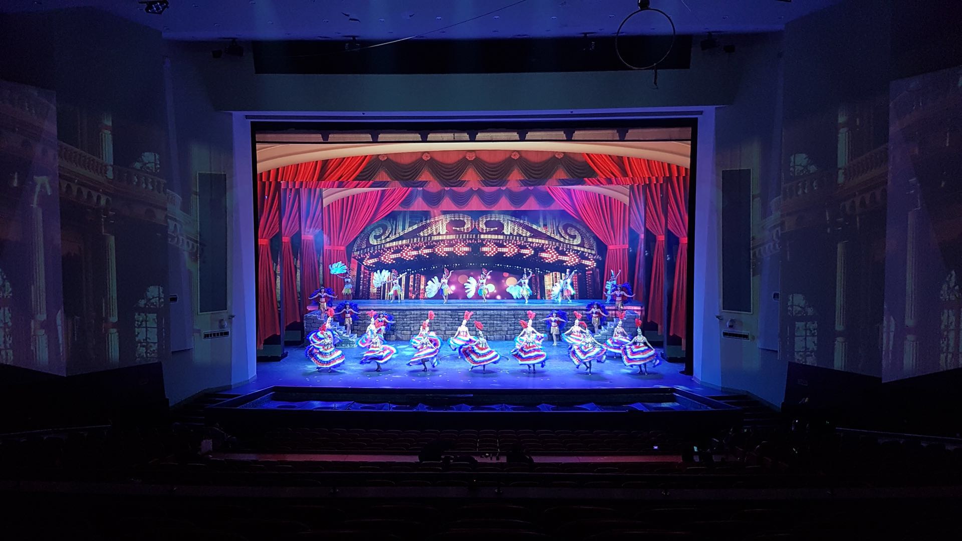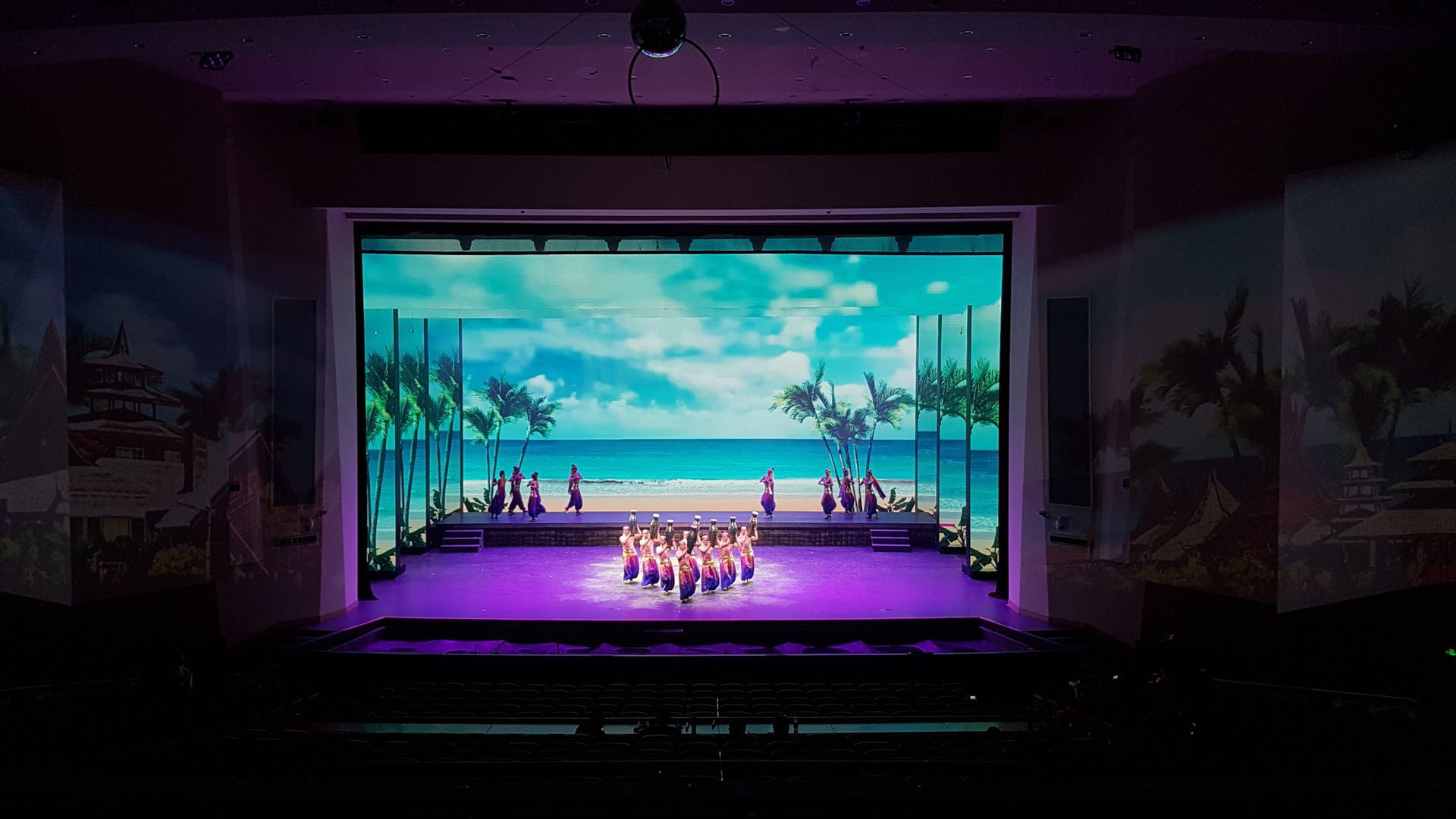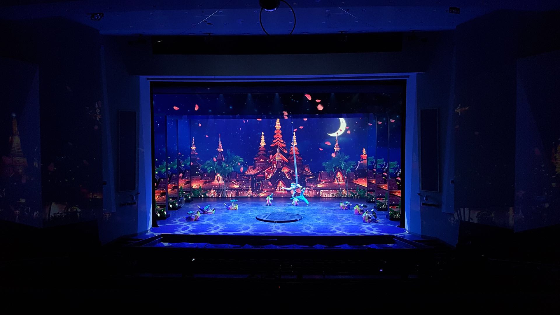 在演出現(xiàn)場,浩洋電子的迷幻燈光配合演出橋段將場景從故事中帶到現(xiàn)場觀眾中的眼前。絢麗的舞臺效果令人震驚,雨雪雷電的實(shí)景、全場旋轉(zhuǎn)的七彩燈光、舞臺與觀眾席上的激情互動,一次次將觀眾的情緒帶向高潮。