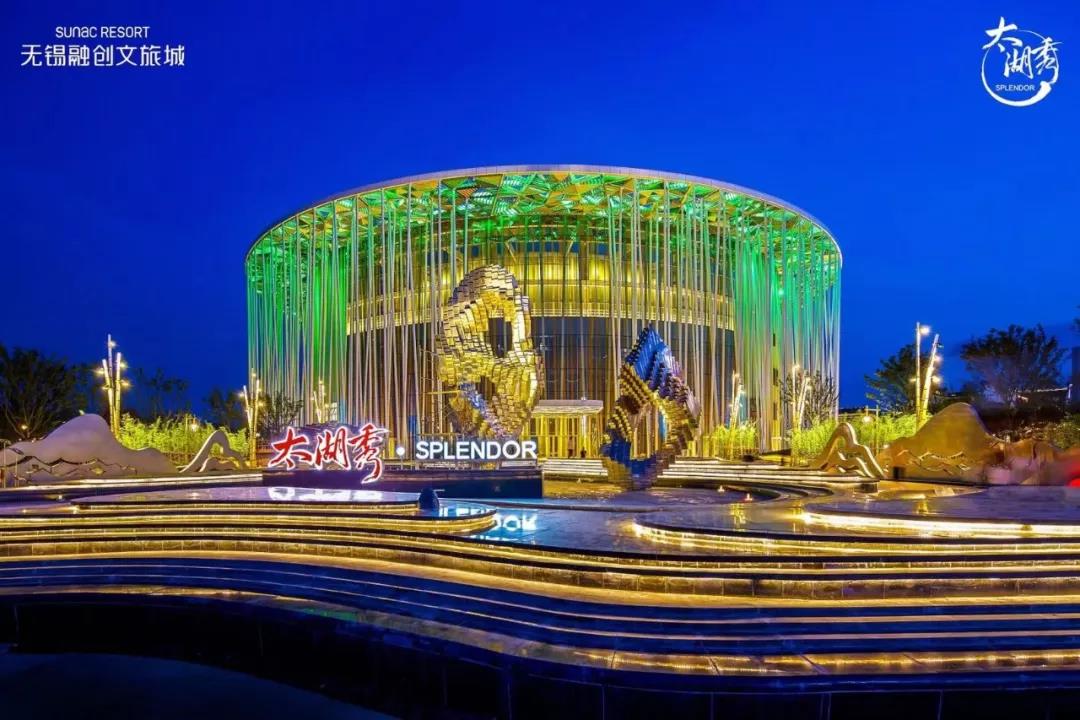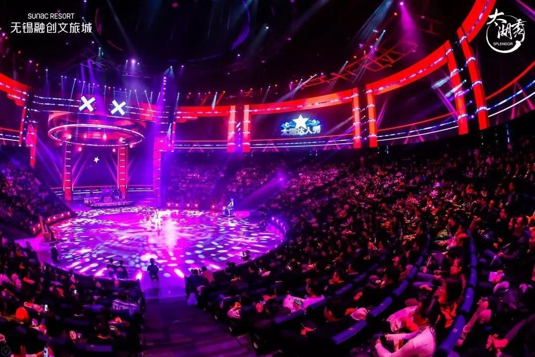 太湖秀劇場的創(chuàng)作靈感來自于江南特色的“竹林”,外圍是365根層疊錯落的仿竹鋼立柱,屋頂使用不規(guī)則的三角形金屬百葉板進行裝飾。3萬平米的劇場內,直徑16米的主舞臺可實現360°旋轉、2米升降和10°傾斜,空中1800㎡的360°環(huán)形LED大屏嚴絲合縫,配合11臺高速布景吊機、22個高速雜技卷揚機、500多個高空舞美吊點打造沉浸式的視覺盛宴,此外還有先進的高空3D噴泉和舞臺水處理系統,可以實現干舞臺和水舞臺的快速切換。