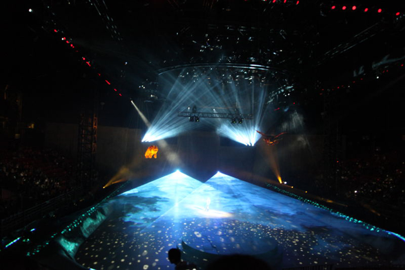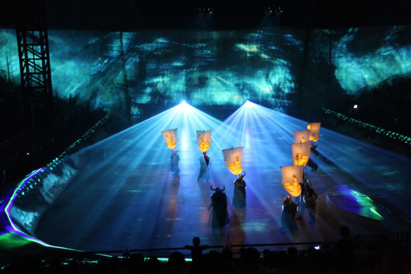 演出采用了浩洋電子近400臺(tái)燈具。舞臺(tái)上,維京少年騎龍奔跑跳躍,這里的龍不僅能上天入海、噴火放電,還會(huì)撒嬌耍賴,表情細(xì)膩逼真,在浩洋燈光的卓越顯色效果、高亮度輸出及投影的無縫銜接映襯下,共同營(yíng)造了一個(gè)動(dòng)感、超炫的舞臺(tái),將童話中的維京人與飛龍共存的魔幻世界真正搬到了觀眾眼前。浩洋電子服務(wù)演出的燈具包括:84臺(tái)切割燈V3000P,24臺(tái)鉑金系列切割燈PT801P,240臺(tái)RGBW 四合一大功率LED 防水PAR燈OVAL 7D,50臺(tái)LED染色燈PB12A。浩洋燈光卓越效果、高亮度輸出、在演出中完美襯托出了超炫、動(dòng)感動(dòng)態(tài)的舞臺(tái),將童話中的維京人與飛龍共存的魔幻世界真正的搬到了觀眾眼前。
