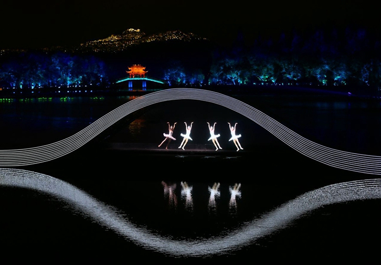 燈光是此次演出的一大亮點(diǎn),晚會(huì)總導(dǎo)演張藝謀說:“50分鐘的演出我們有100個(gè)以上的燈光變化,要靠燈光、湖水倒景、月色等方方面面?zhèn)鬟f出詩情畫意。”作為2008年北京奧運(yùn)會(huì)開閉幕式燈光總設(shè)計(jì)、2014年APEC歡迎晚宴活動(dòng)燈光創(chuàng)意總監(jiān),此次G20峰會(huì)文藝演出的總制作人沙曉嵐,用燈光對(duì)西湖的山、水等自然元素進(jìn)行藝術(shù)再創(chuàng)作,勾勒一幅驚艷世界的視覺美景。