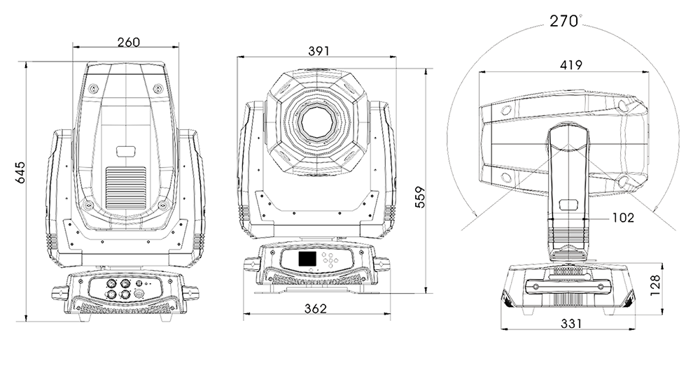 可從控臺(tái)完成更改DMX地址碼,遙控開(kāi)關(guān)燈泡,機(jī)器重設(shè),聲控模式的轉(zhuǎn)換等功能